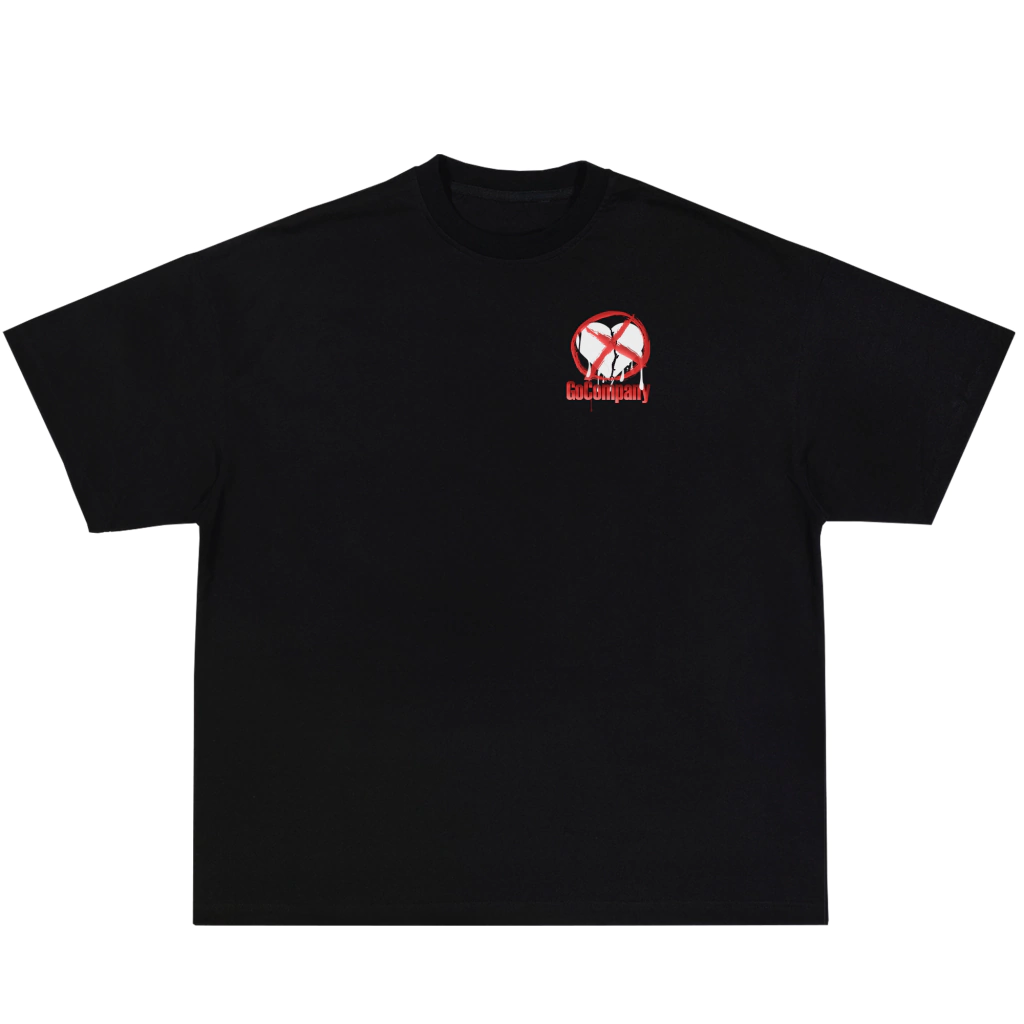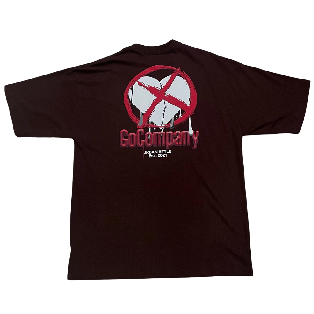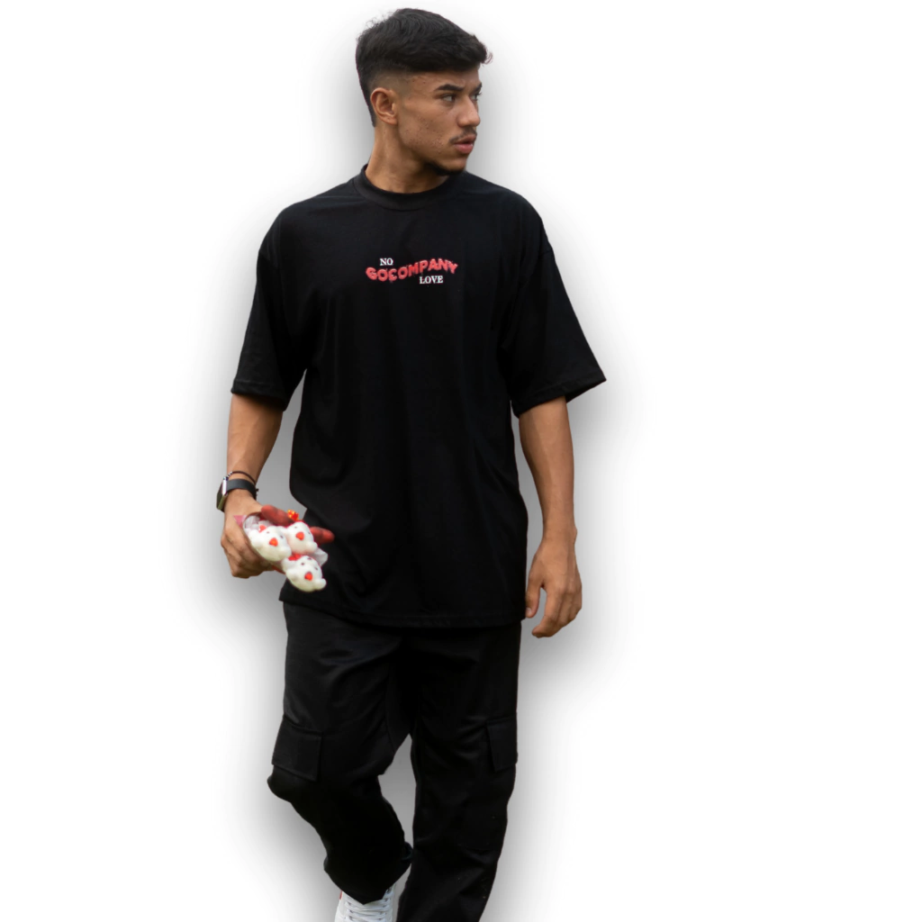 🚫 Costas com estampa grande “No Love – GoCompany”, frente com detalhe minimalista no peito.