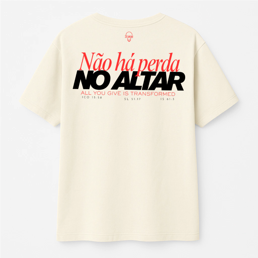 Mais do que uma camiseta, essa peça nasce de uma mensagem eterna: no altar não existe perda, mas entrega que gera vida. Inspirada na canção At the Altar, da cantora e líder de worship Dany Andrade, essa oversized conecta estilo urbano e propósito espiritual em uma só peça.